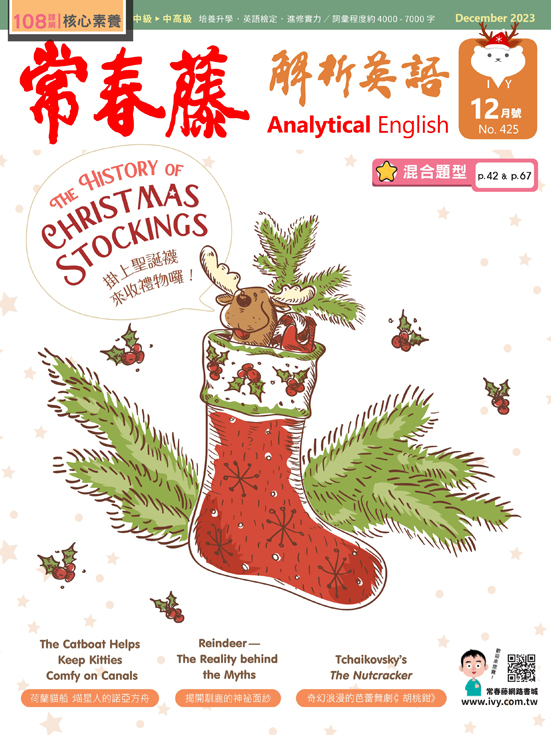 除了童書,我們也推薦收錄在《常春藤解析英語》12月號(No.425)當中,介紹聖誕襪傳說的精彩英文文章。